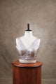 Ethereal and graceful, MEGALAI is a tissue Banarasi blouse woven in subtle rose-gold tones. Its shimmering stripes and deep neckline exude quiet luxury, while the option of attachable sleeves offers versatile styling. Perfect for festive drapes and wedding soirées.