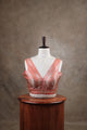 Ethereal and graceful, MEGALAI is a tissue Banarasi blouse woven in subtle rose-gold tones. Its shimmering stripes and deep neckline exude quiet luxury, while the option of attachable sleeves offers versatile styling. Perfect for festive drapes and wedding soirées.