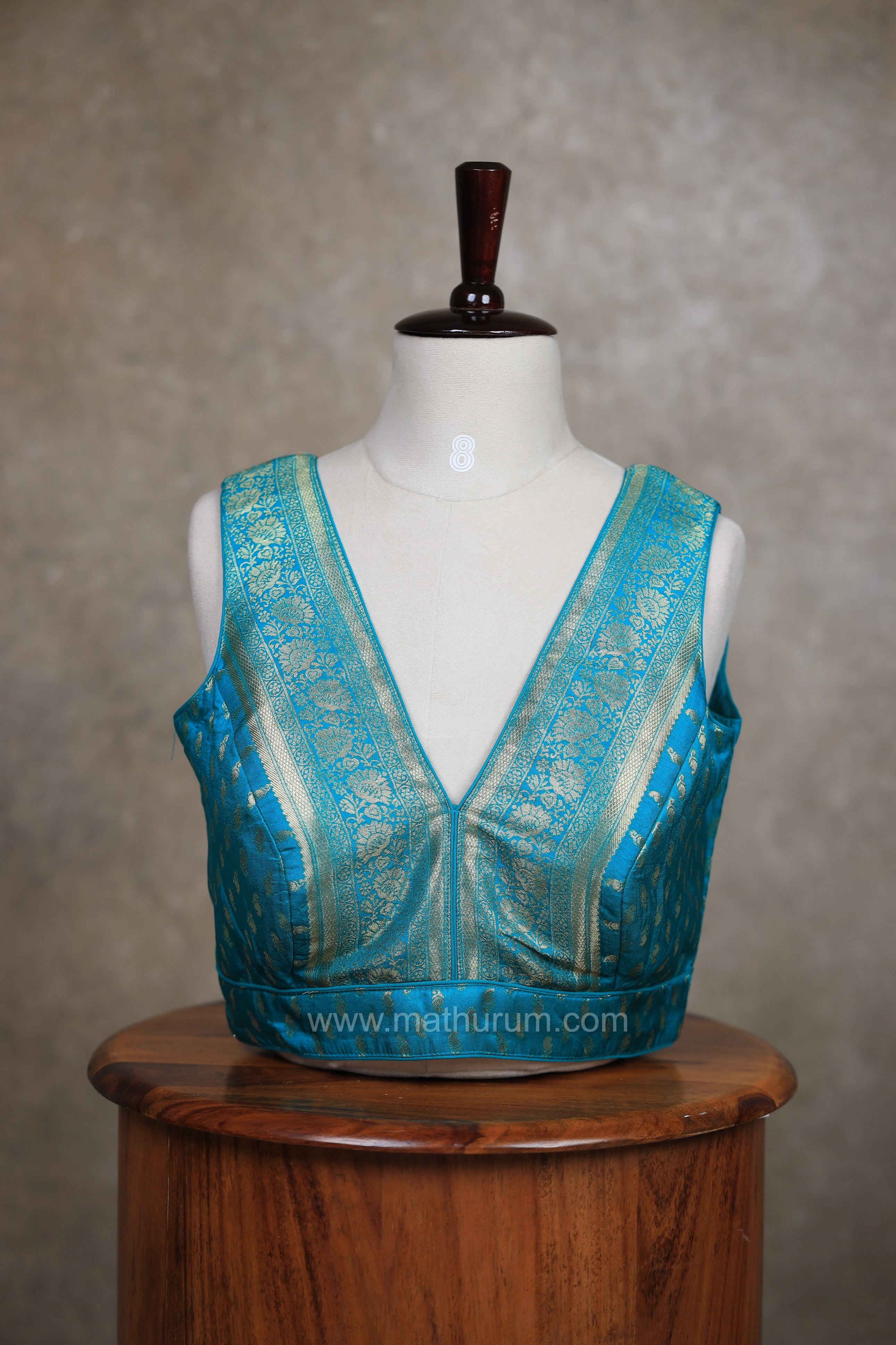 Kundhavai - Rama Blue Blouse (Attachable Sleeves)