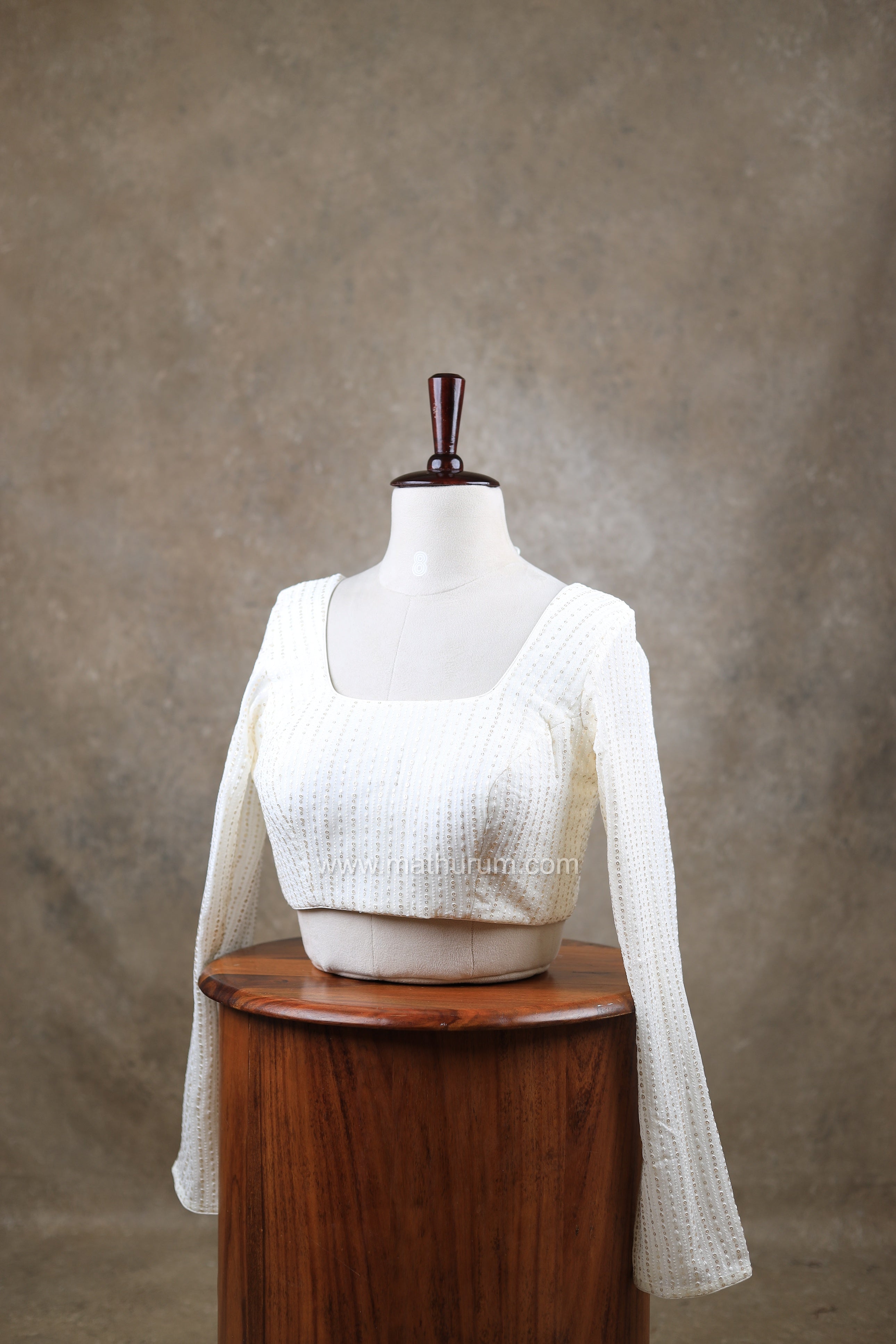 Turn heads with RAGA, a stunning full-sleeved blouse drenched in all-over sequins. Crafted for the bold and the elegant, its structured square neckline, fitted silhouette, and glimmering black base make it the perfect match for sarees, lehengas, or modern fusion...